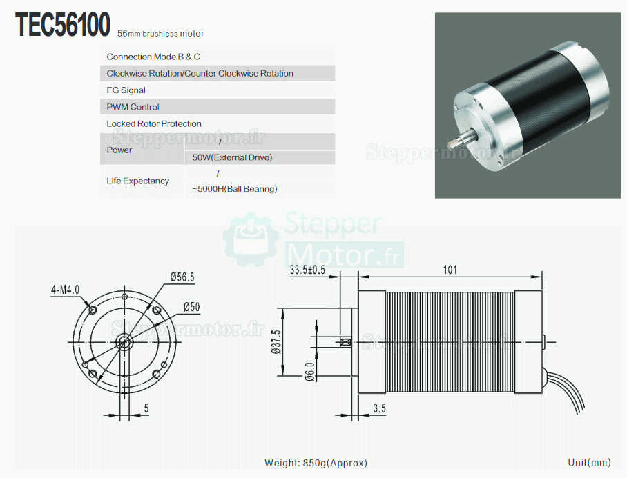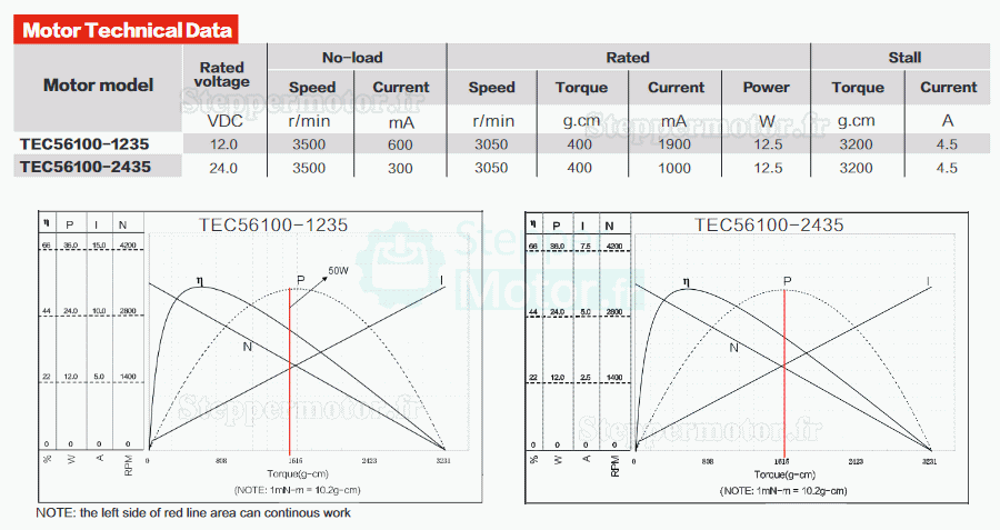 10 Pièces Moteur CC sans balais TEC56100 12V/24V 400g.cm 3050tr/min 12,5W arbre 8mm