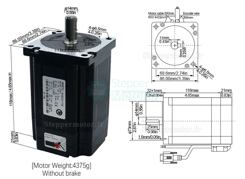 Kit moteur pas à pas boucle fermée Nema34 86HB250-118B-HBS86 No Brake 1,8Deg 8N.m + Driver HBS86