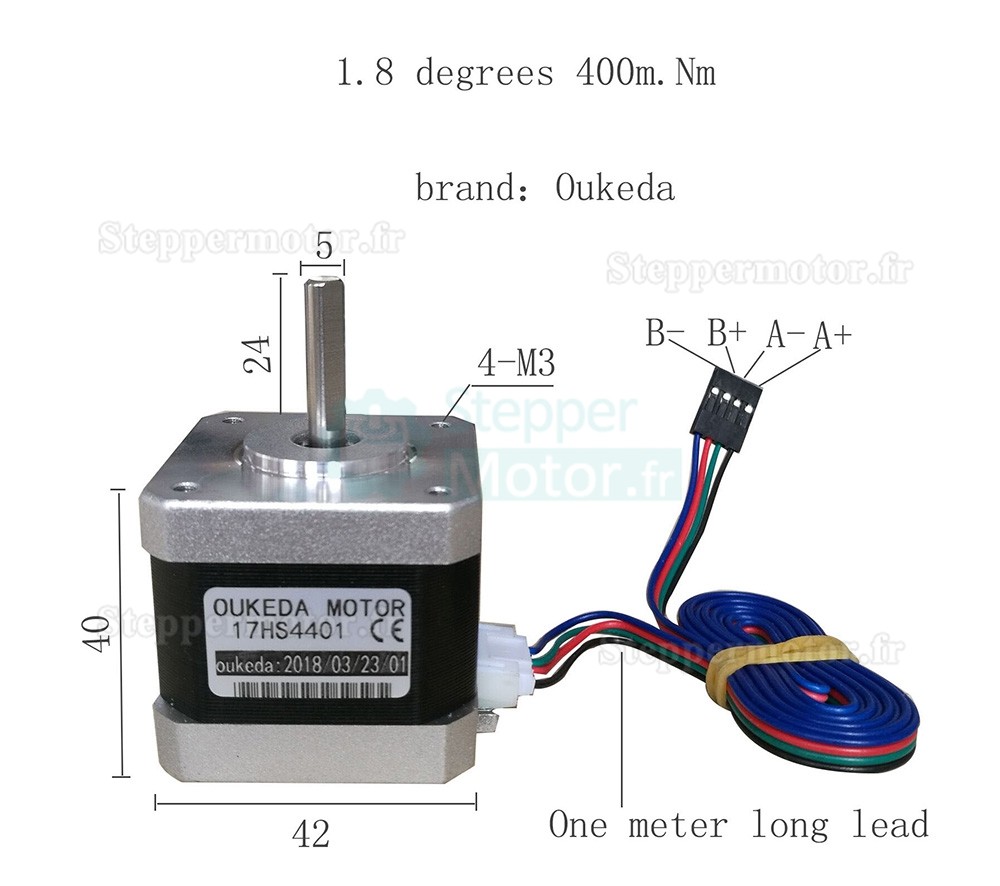 Moteur pas à pas NEMA 17 Oukeda 17HS4401 1,8° 45 Ncm biphasé pour imprimante 3D et robotique