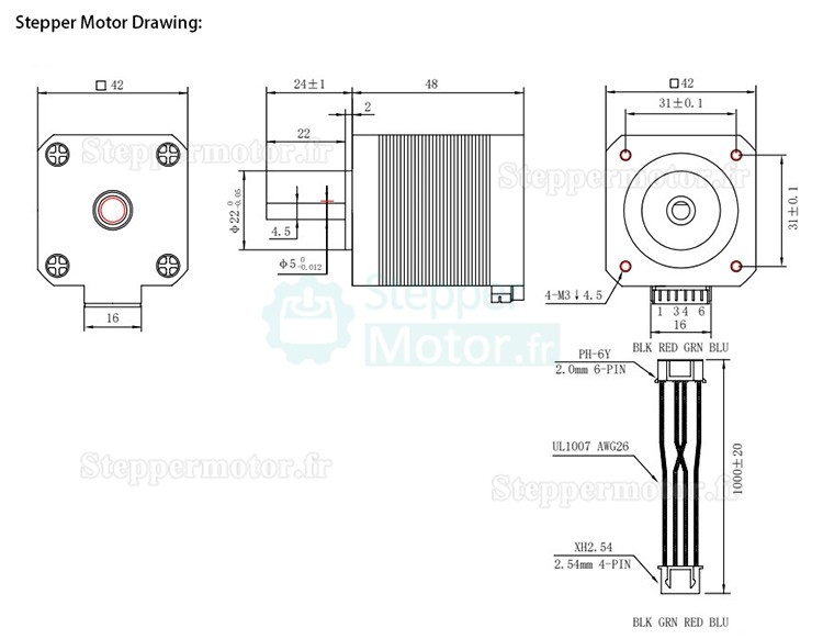 Il s'agit d'un moteur pas à pas bipolaire biphasé avec un angle de pas de 1,8° et un couple de maintien de 59 Ncm. Il offre un courant de phase de 2 A et fonctionne sur une plage de tension de 12 à 36 V. Avec un châssis Nema 17 (42 mm x 42 mm), un arbre de 5 mm de diamètre et une conception en D, ce moteur est destiné aux imprimantes 3D et autres applications de précision.